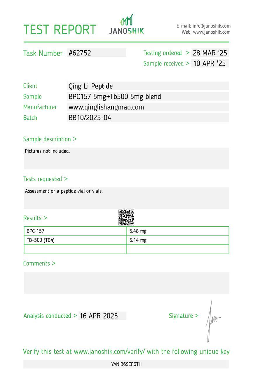 The BPC-175 / TB-500 blend combines two research peptides studied for their potential roles in tissue recovery, cellular healing pathways, and structural support mechanisms.
